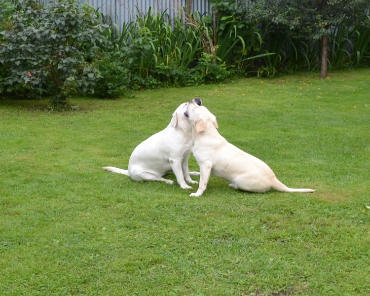 Набегались так, что, уже, сидя играют)) Хэсли и Тайра чувствуют себя как дома. Они дружат. Мы рады, что собаки-гости ...