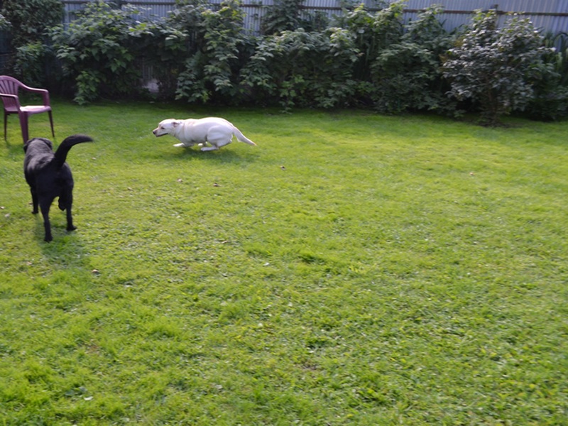 На нашем участке просторно для того, чтобы бегать и играть)