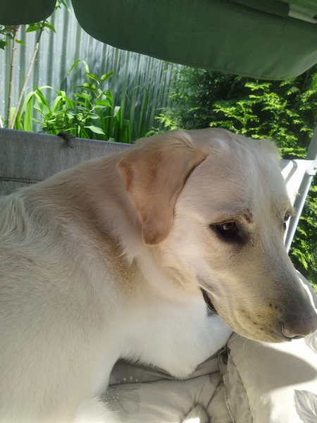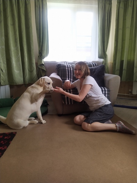 Лабрик первый раз у нас в гостях. Он активен и с хорошим аппетитом.