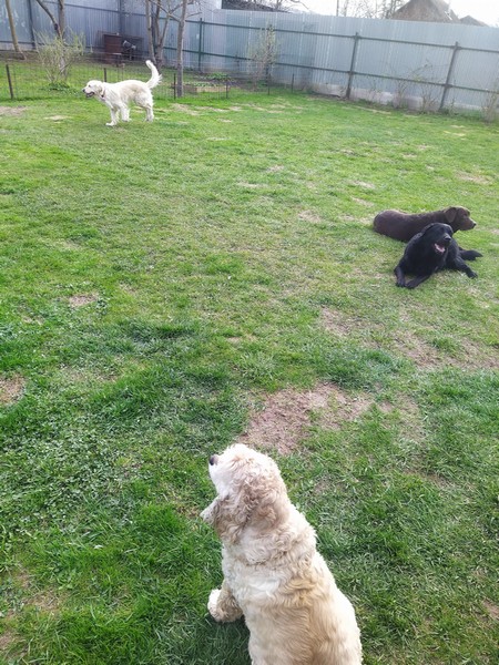 Все счастливы. Дружелюбный характер лабрадора, голдена, американского кокер-спаниеля, звонкий лай грифонов)). Очень х...